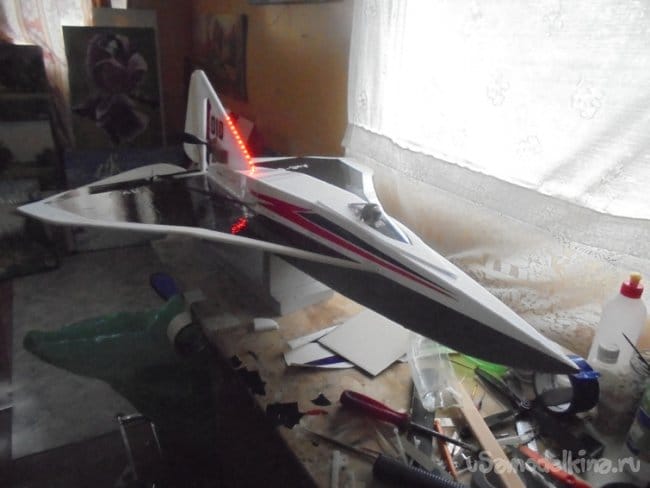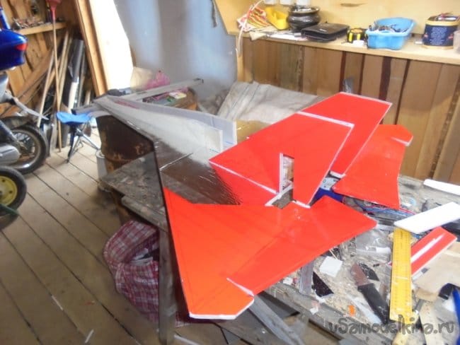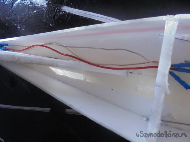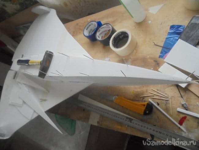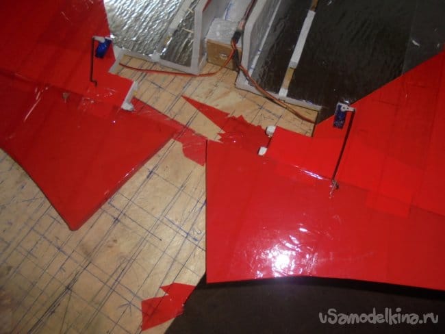 Монтаж управляющих поверхностей делали на двухстороннем скотче и сверху заклеивали прозрачным скотчем.
