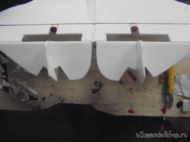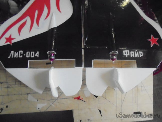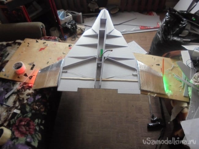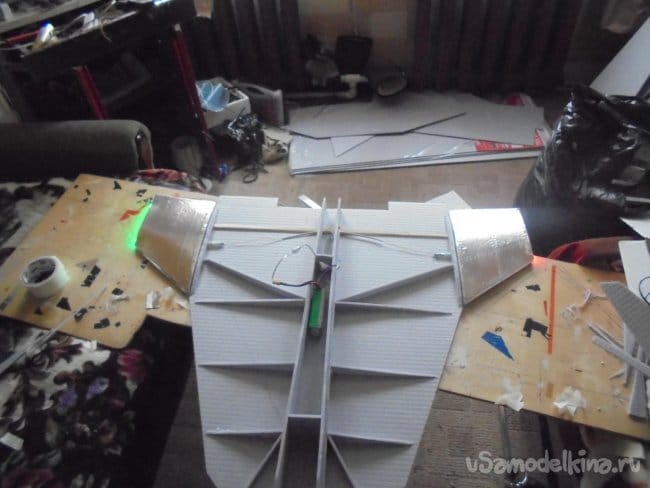 Моторы, изначально, планировалось поставить на элевоны, но после долгих раздумий было решено ставить их на крыло.
