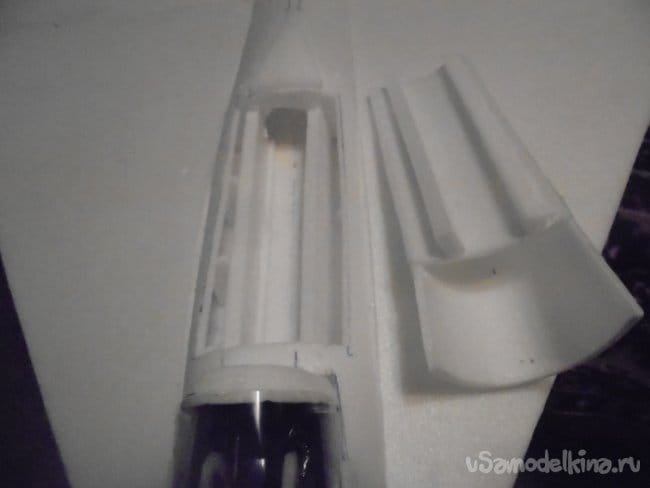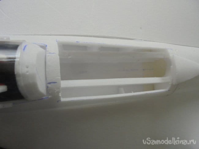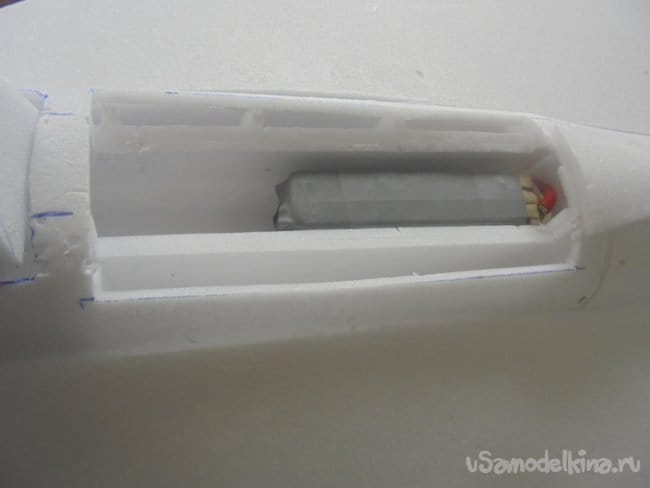 Секция фюзеляжа за кабиной сделана съемная. Под ней расположен аккумулятор, места достаточно, аккумулятор можно смещать в любую сторону при балансировке ЦТ. .