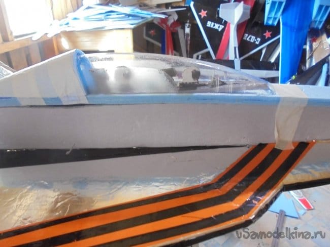 При склейке модели применяются кусочки малярного скотча, для фиксации отдельных элементов – технологические наклейки.