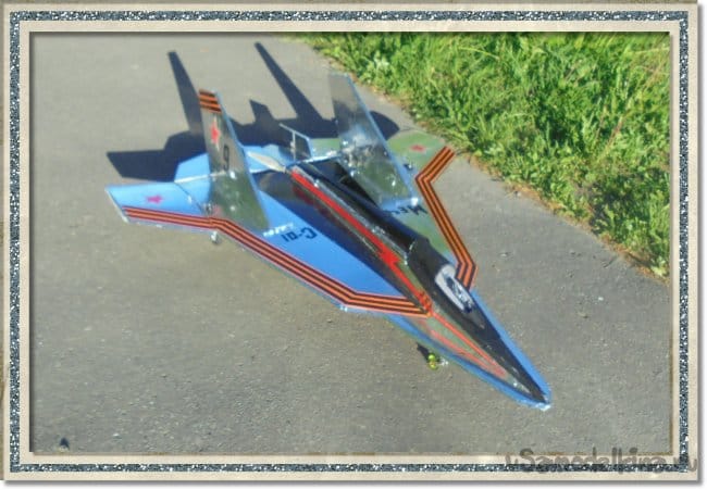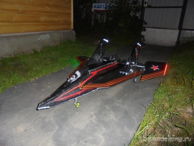 Хочу отметить одну конструктивную особенность этой модели. Модель оснащена поворотными законцовками консолей крыла. Они работают совместно с управляемым вектором тяги, как элероны.