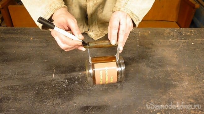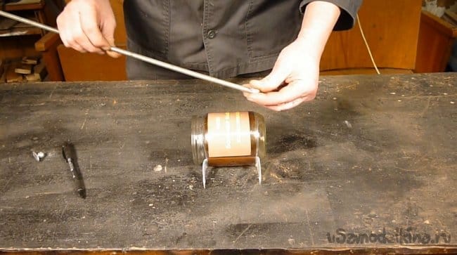 Теперь крепим заготовку ручки к банке.