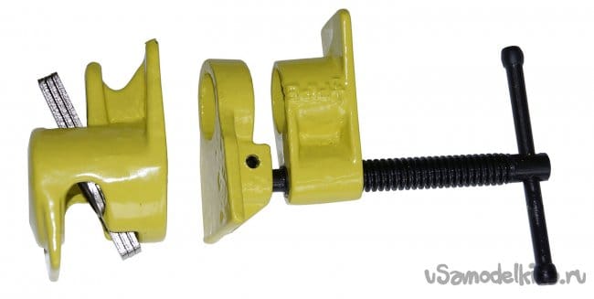 Еще одним бонусом стало то, что практически нет ограничения на зажимаемые детали, так как используется шпилька диаметром 5 мм. В то же время подобного рода струбцины из за более массивного упора имеют такое ограничение.