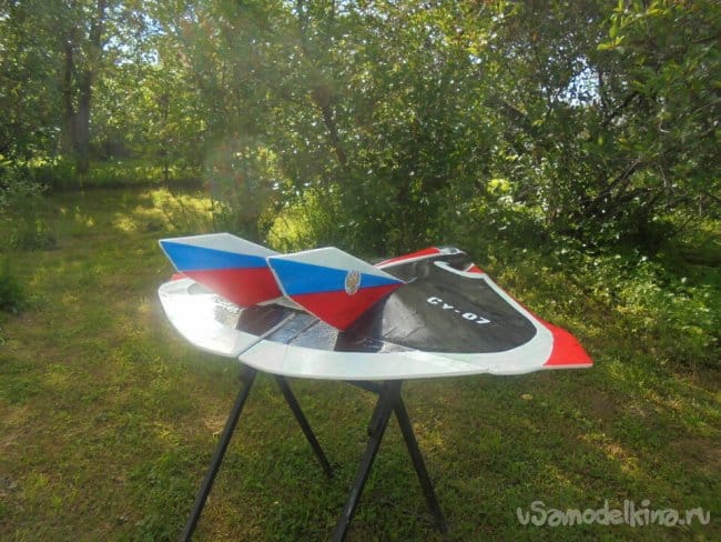 После нескольких консультаций с Сергеем были внесены небольшие изменения в конструкцию модели. Изменилась форма килей, увеличены рулевые поверхности всеракурсного ОВТ