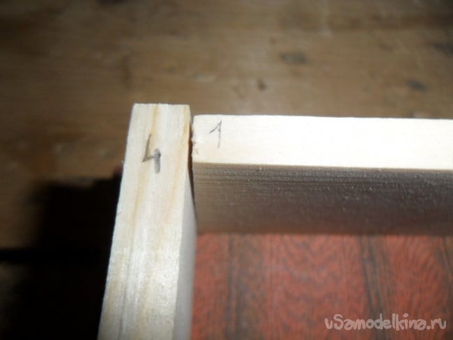 Окончательно проверяем с помощью угольника и убеждаемся, что все попарные детали ящиков, а также перегородки равны по длине в каждой паре. Далее: находим наиболее оптимальное расположение деталей относительно друг друга в каждом ящике и помечаем карандашом, чтобы не запутаться при финальной сборке их.