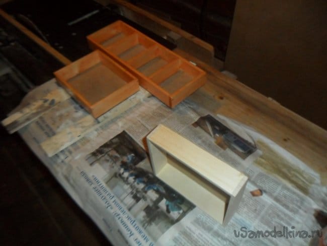 Собираться будет сначала длинный ящик. И начнем с перегородок.
