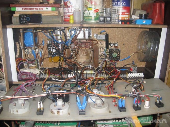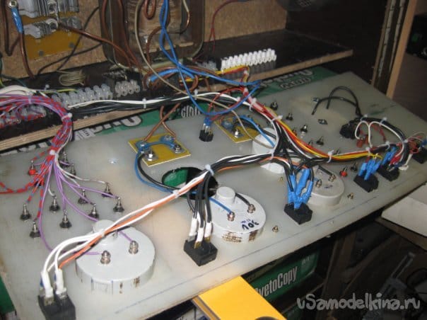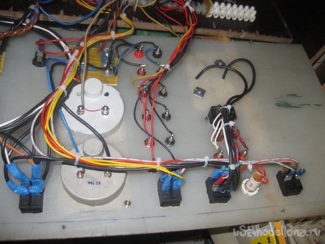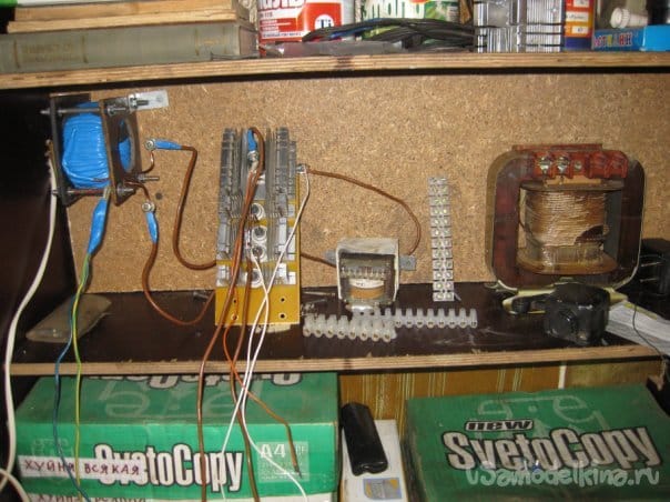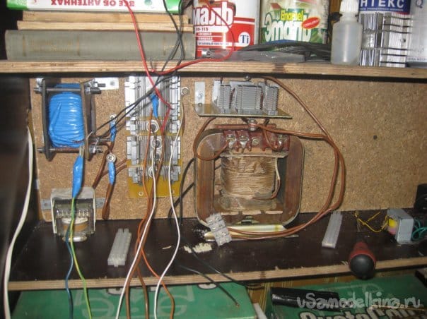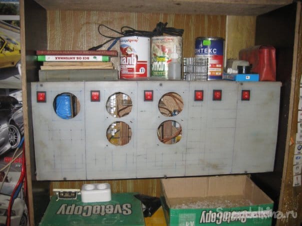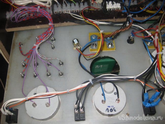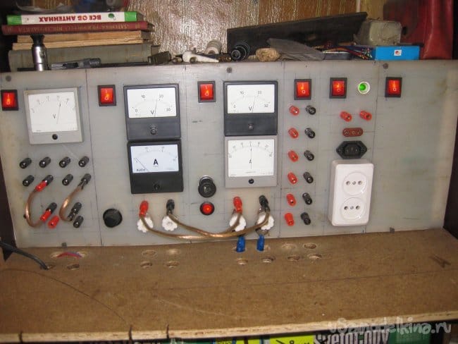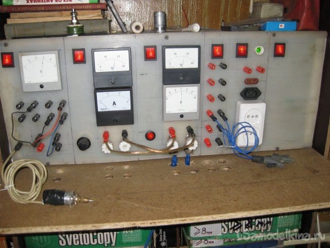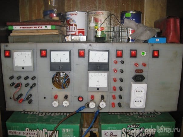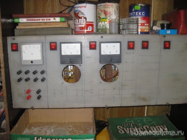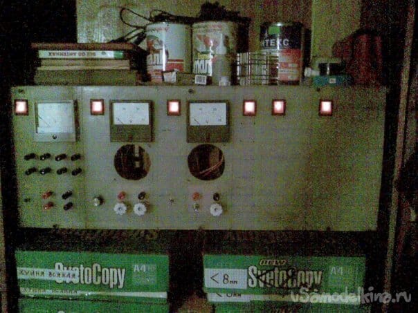 Пятая секция 220вольт, маленькая СКЛка уже после записи видео была заменена на круглый врезной цифровой амперметр с шунтом.