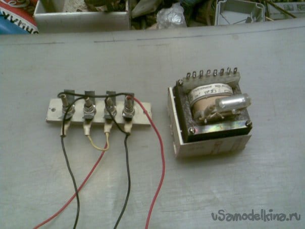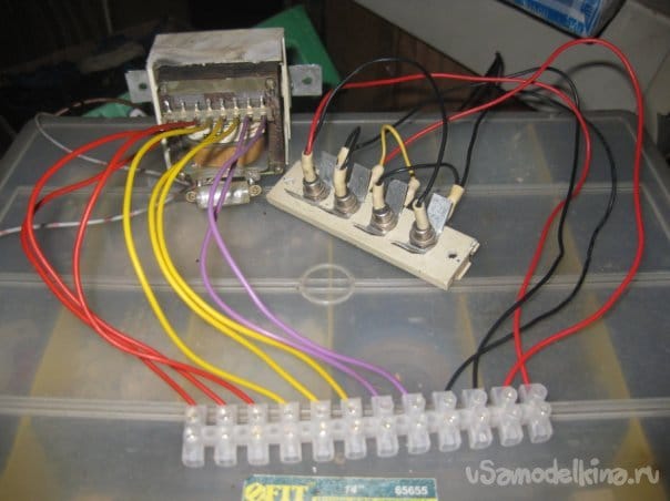 Сам транс очень слабенький, и подходит только для проверки разных лампочек, движков и прочей электроники с потреблением не более 1-2 ампер.
