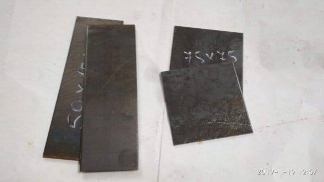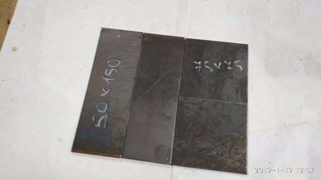 Так же из листа 3 мм вырезаем две заготовки размером 150х50 мм, и две заготовки 75х75 мм. пластина размером 150 на 180 мм у меня была в наличие вот с нее и пилил.