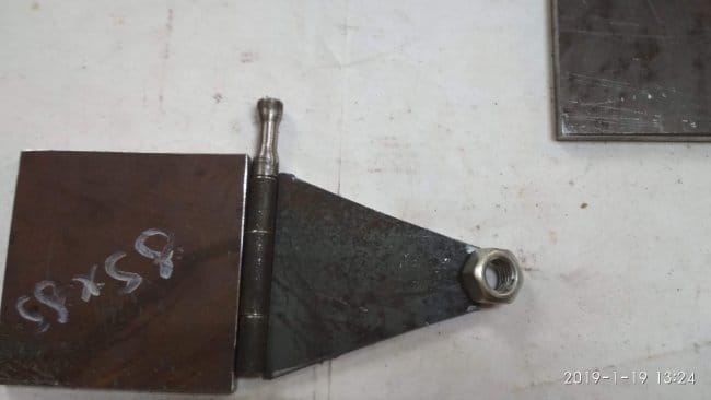 и изготавливаем детальки для петли, на каждую доработку надо одну не съемную петлю и одну разборную. В начале, когда рисовал струбцину планировал ее не разборную, т.е. все детали собрать на сварку, но прикидывая процесс сварки в голове, понял, что после сварки вытащить готовый узел будет невозможно, поэтому пришлось делать разъемное соединение и шарнир.