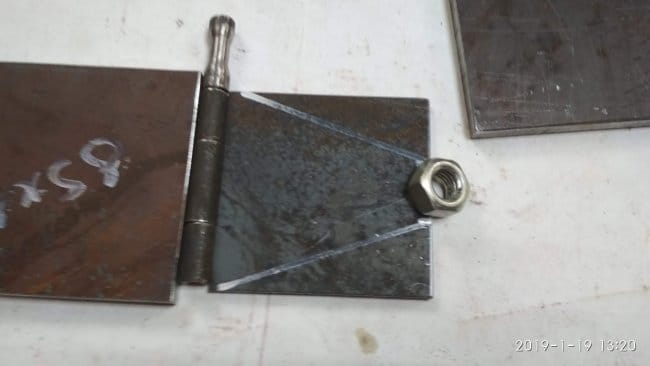 Следующим этапом начал делать откидную часть на петлях. Пришлось маленько срезать углы у заготовок 75х75 мм для более эстетичного вида.