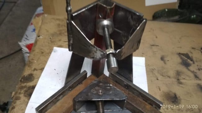 Хочу поделиться своей доработкой приспособления «угловая струбцина». Струбцина очень удобная для сварки деталей под прямым углом, но иногда возникает необходимость сборки объемных (3D) каркасов коробов, в которых надо сварить три детали под прямыми углами по отношению к друг другу. Вот тут моя доработка вместе со струбциной окажет неоценимую помощь в работе…