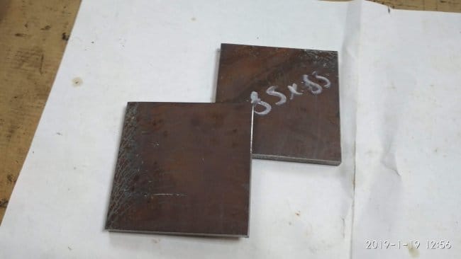 Все размеры могут быть под ваши условия и исходя из имеющихся материалов. Берем лист толщиной 8 мм, размечаем две пластины размером 85х85 мм, на каждую струбцину надо две таких заготовки.