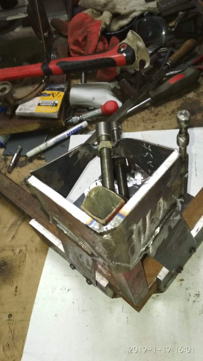 Я для этого установил плиту от пресса, предварительно проверив прямоугольность граней. Далее установив и закрепив прижимами, прихватил на сварку, варю самодельным полуавтоматом, опять проверяю правильность ориентации (прямые углы), по необходимости подрехтовываю. Убедившись в правильности монтажа обвариваю всю конструкцию.