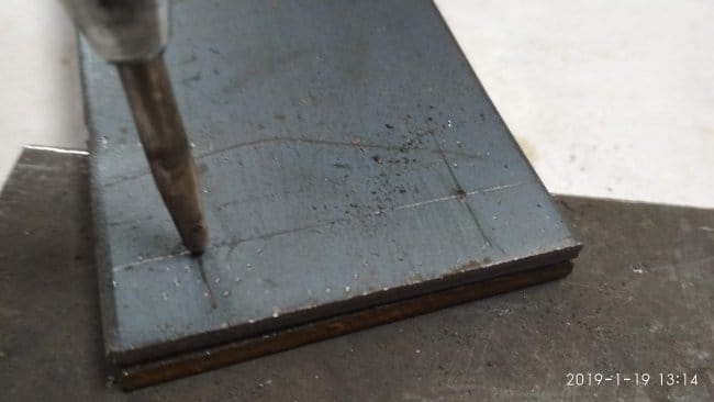 Теперь подошла очередь за кронштейнами, которые будут держать нашу конструкцию на основной детали-струбцине. Для этого размечаю отверстия в пластинах 50х150 мм, сверлю их сверлом диаметром 6 мм.