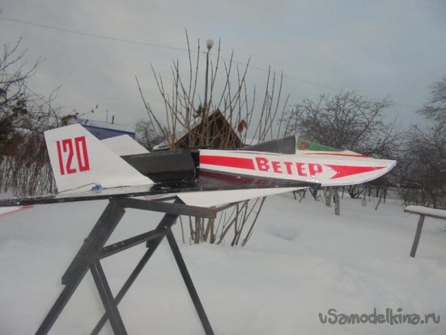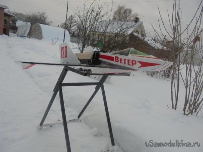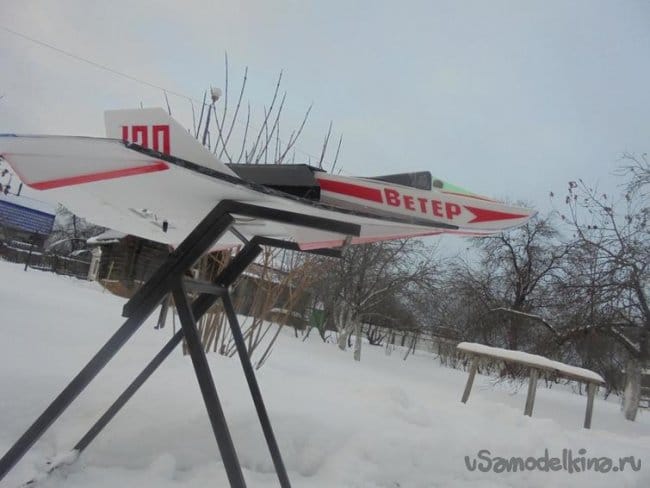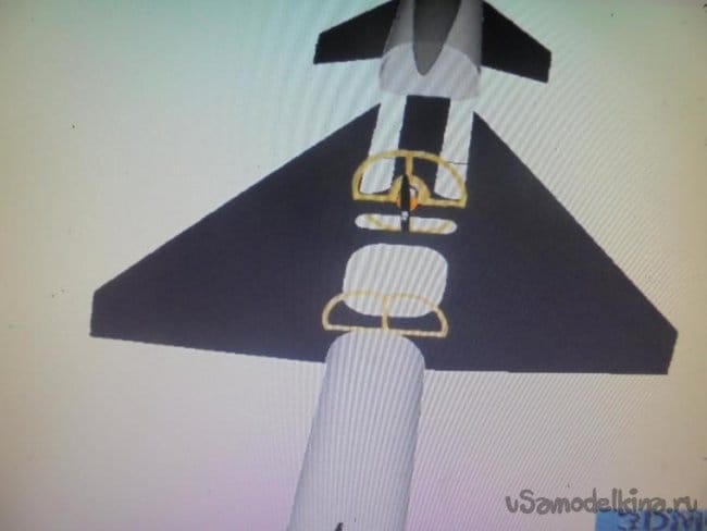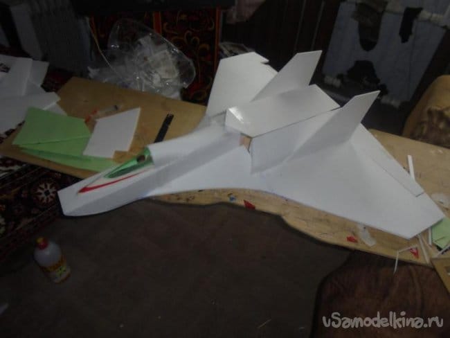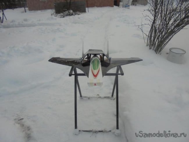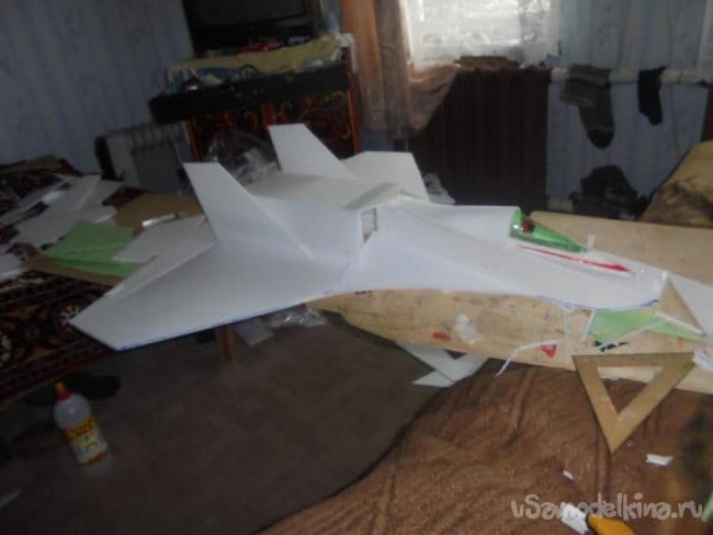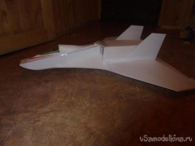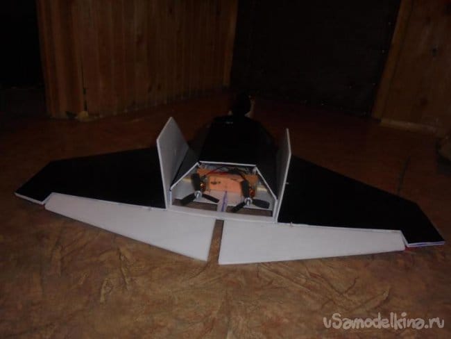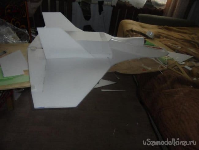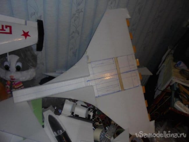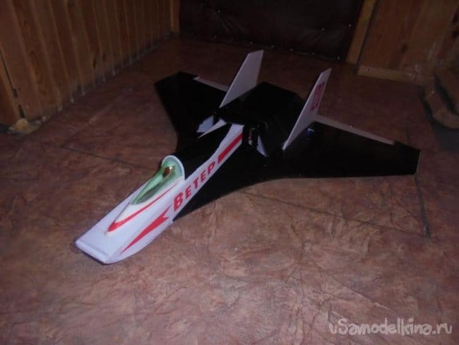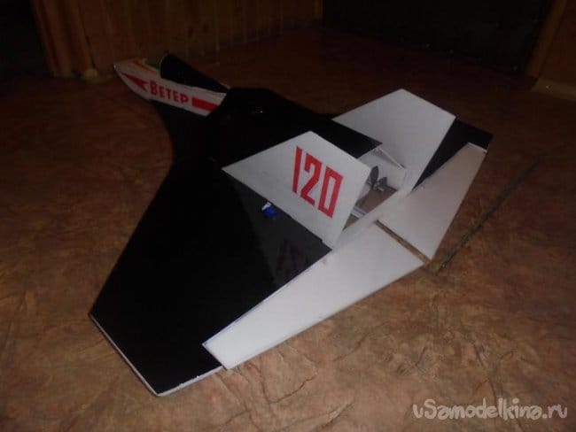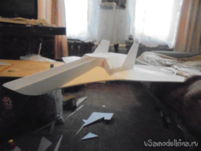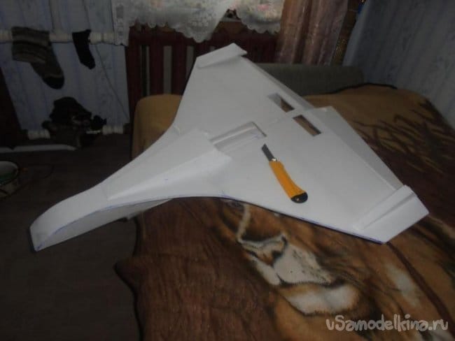Вырезал из потолочки несущее крыло, обычной, треугольной формы.