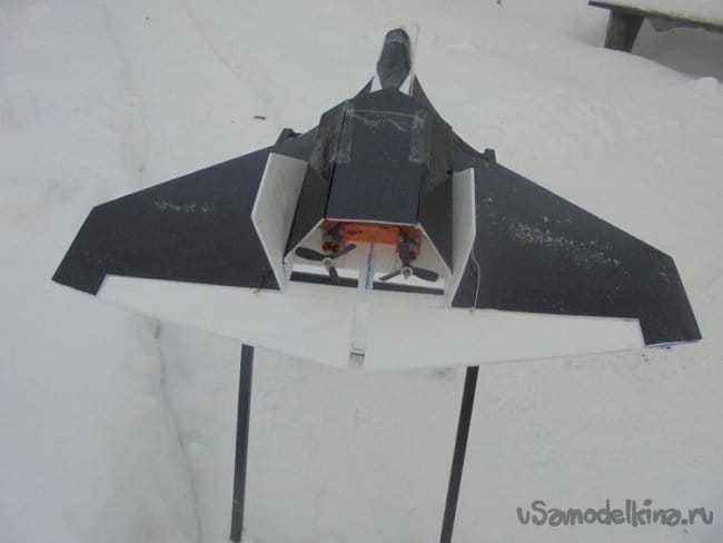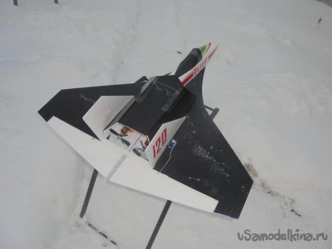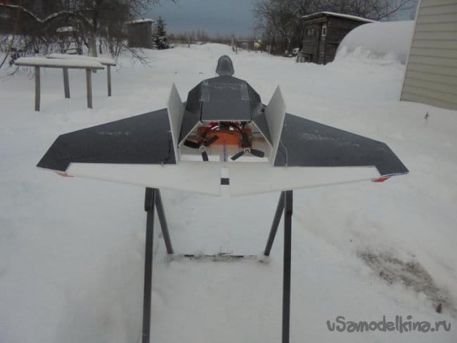Установил моторы, навесил элевоны, смонтировал сервомашинки, уклеил кабанчики, подсоединил тяги.