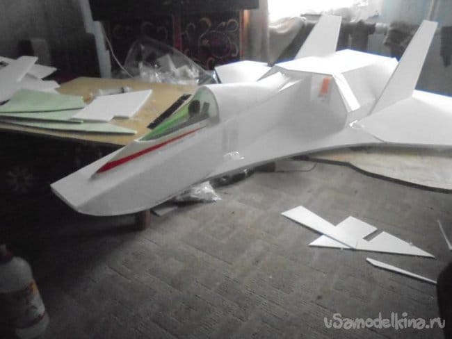 На это крыло приклеил боковины фюзеляжа. Сверху вклеил кабину , которую вырезал из пластиковой бутылки.
