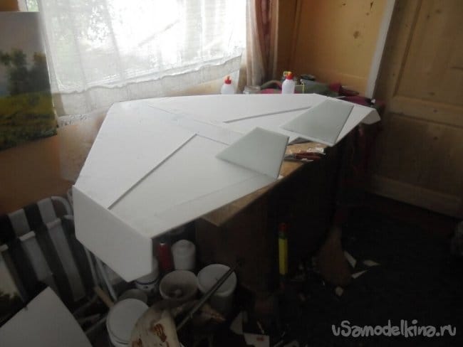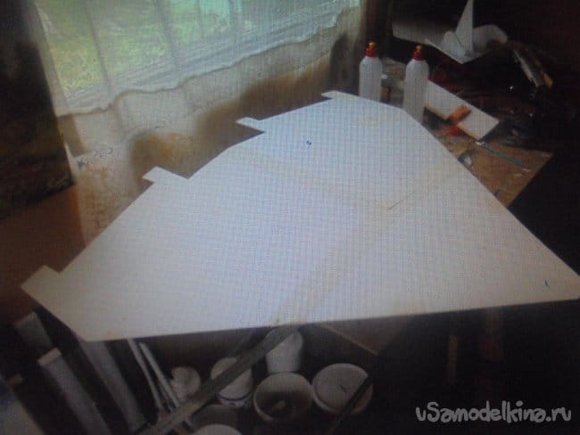 В некоторых случаях используем и двухсторонний скотч. Вся модель делается из двух слоёв потолочки.