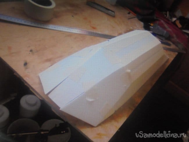 Но вырезал и склеил. При склейке применяю технологические наклейки из малярного скотча.