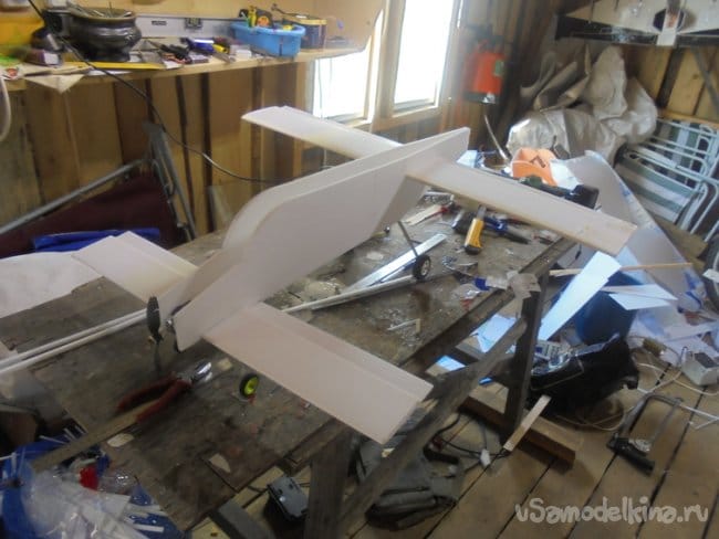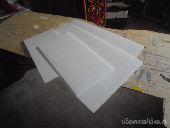Теперь перехожу ко второй модели. Повторяю все операции, как и на первой модели, с той лишь разницей, что боковины фюзеляжа делаю из утеплителя "Пеноплекс".