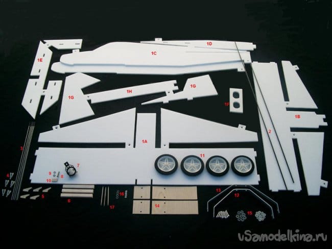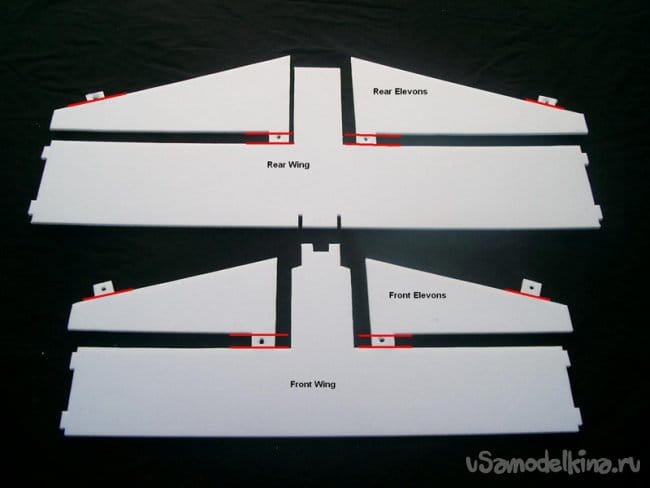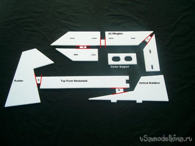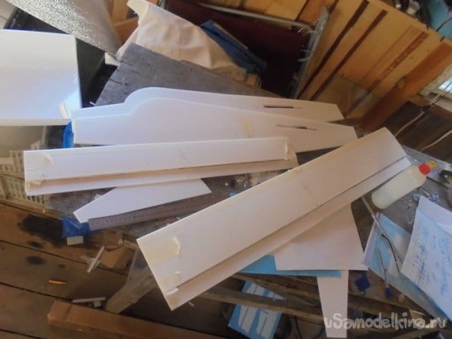 В начале делаются все заготовки для крыльев, фюзеляжа, киля и навешиваемых рулей.