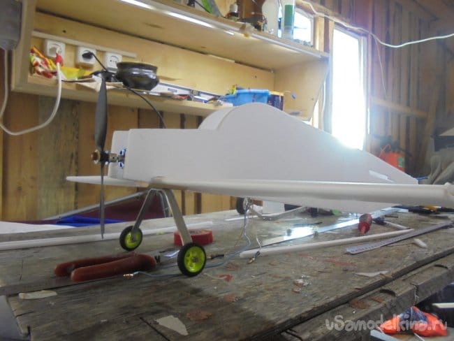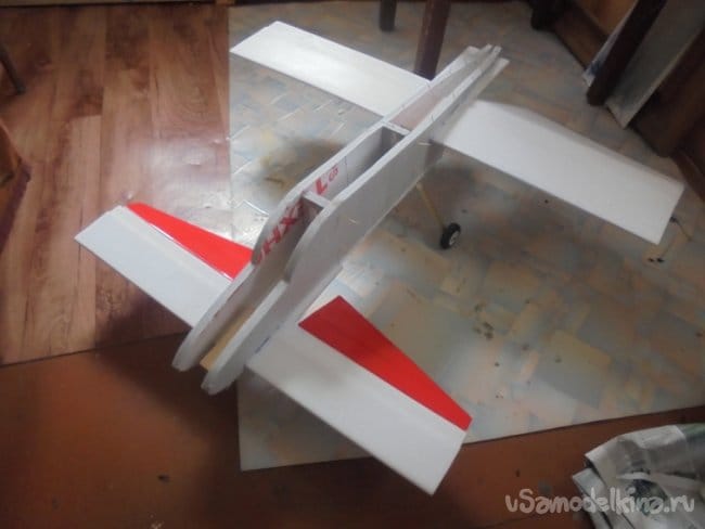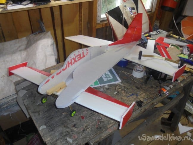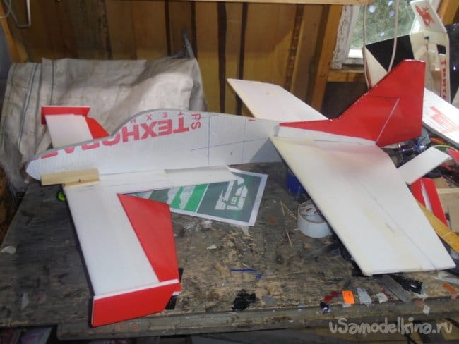 Осталось подрезать фюзеляж в носовой части, установит мотор. А также смонтировать сервомашинки, подсоединить тяги.