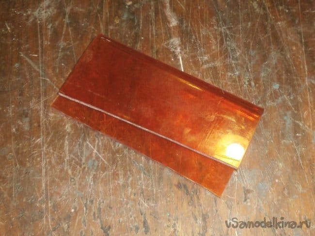 Толстый кусок нагреваем, сгибаем пополам начерно: