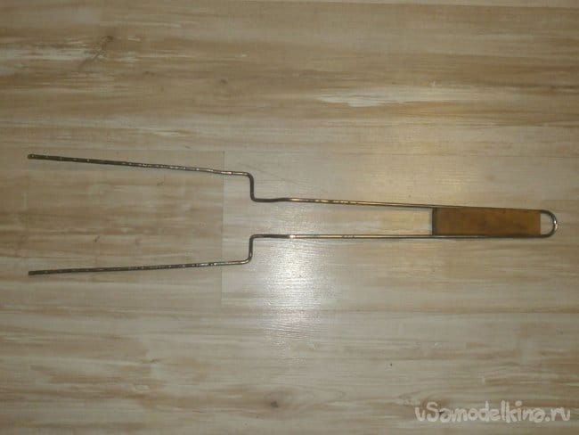 И снова, креативное отрезвление старшего сына от первоначального замысла, заставило меня задуматься. Что представляет из себя классическая кочерга? Г-образная металлическая палка, плоская на конце, и с удобной, не нагревающейся ручкой. А что мешает сделать не одинарный, а двойной наконечник? Так и угли перемешиваться будут эффективней, и в отверстиях поддувала она не застрянет, и выглядеть будет интересней. Нет, решено, делаем такую.