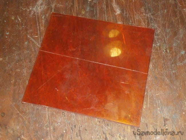 За долгие годы я сделал их не один, поэтому выкройку рисую «практически с закрытыми глазами». А вы же можете просто отпечатать этот рисунок, уменьшив его, увеличив, растянув или сжав: всё зависит от пожеланий и исходного куска жести. У меня оказался под рукой фрагмент 120 на 240 мм.