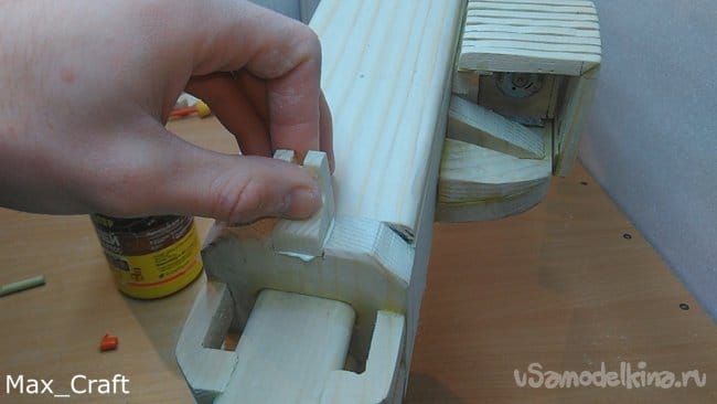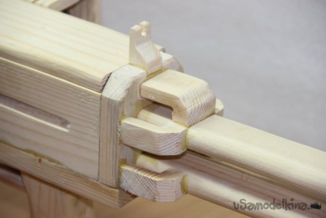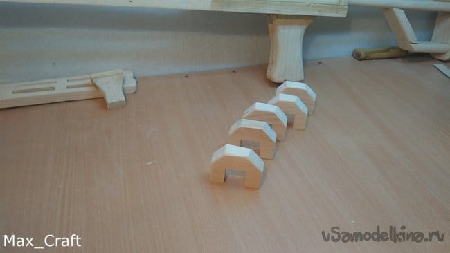 Шаг 4: Затем вырезаем две вот таких детальки. И приклеиваем их к основанию, и так же приклеиваем приклад.