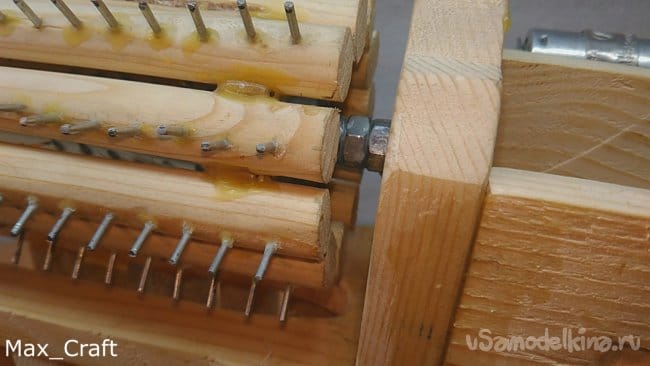 Шаг 8: Холодной сваркой вклеил с каждой стороны по одному подшипнику. Затем установил барабан на своё место. Барабан установлен на двух осях, осями служат два болта, которые плотно вставлены в подшипники.