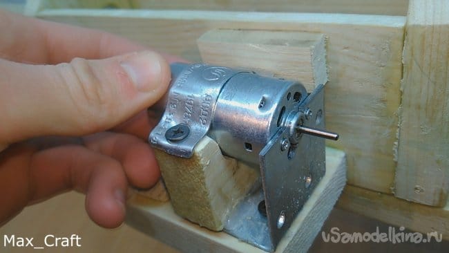 Шаг 9: Затем делаем вот такую подставку под моторчик. Моторчик я взял 12 V и установил его на своё место. Чтобы спрятать мотор, я сделал вот такую декоративную защиту.