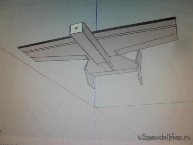 Для меня самым сложным элементом оказался пенал - фюзеляж. Он делается из даух частей, которые вставляются одна в другую и получается короб, в котором размещается вся электроника. Электроника. На передней части одной из половинок фюзеляжа вклеил кусок утеплителя, с приклеенным на него куском оргалита (ДВП) размером 40 х 40 мм. Тут будет крепиться мотор.