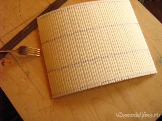 Вырезал заготовки для внутренней обшивки фюзеляжа. С внутренней стороны потолочки сделал русты столовой вилкой, что бы легче гнулась при склеивании.