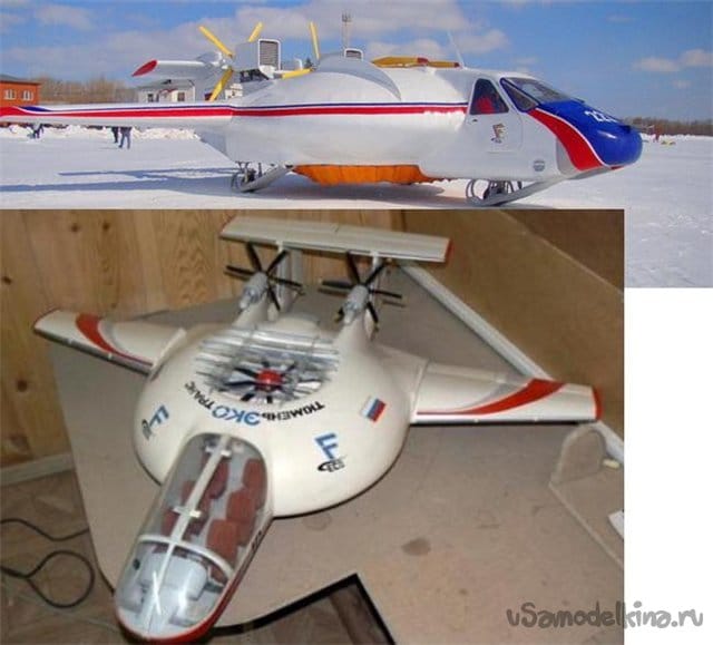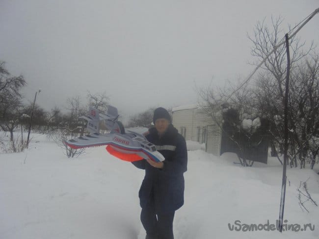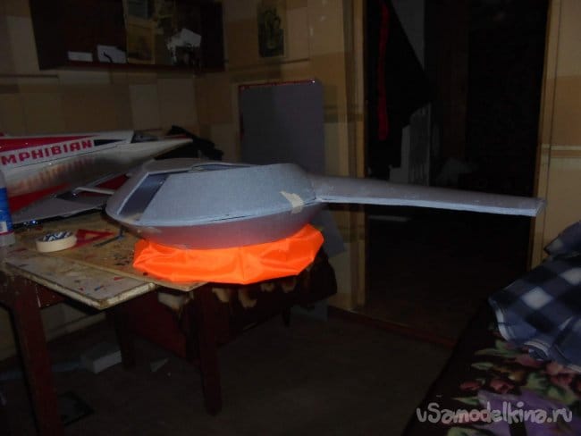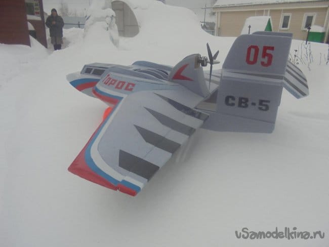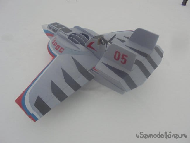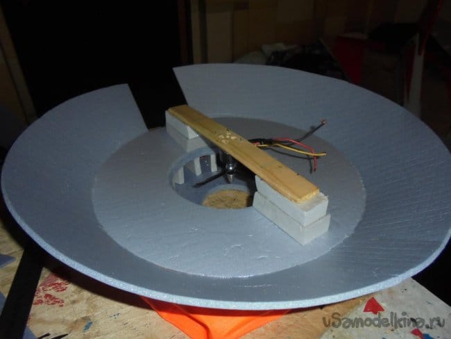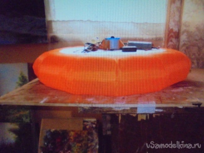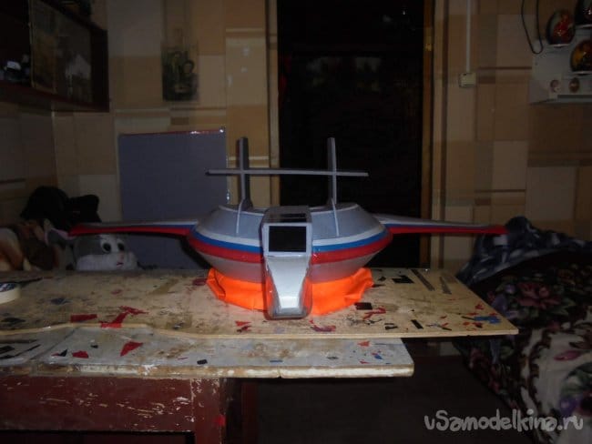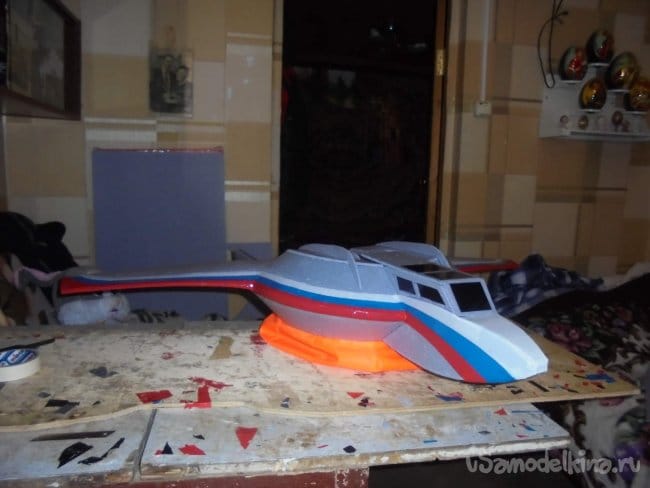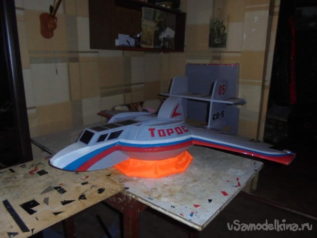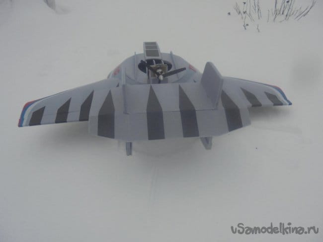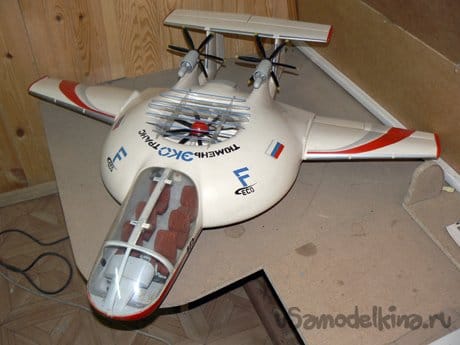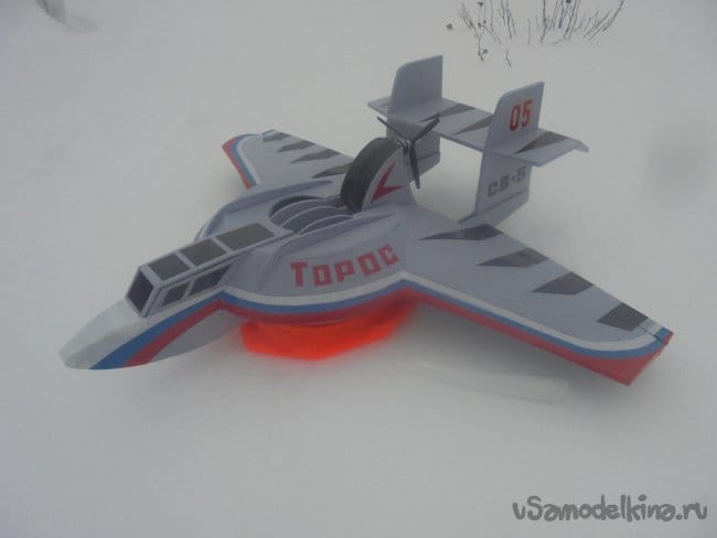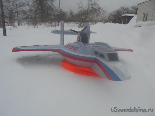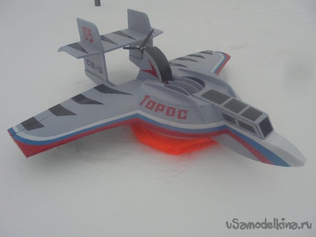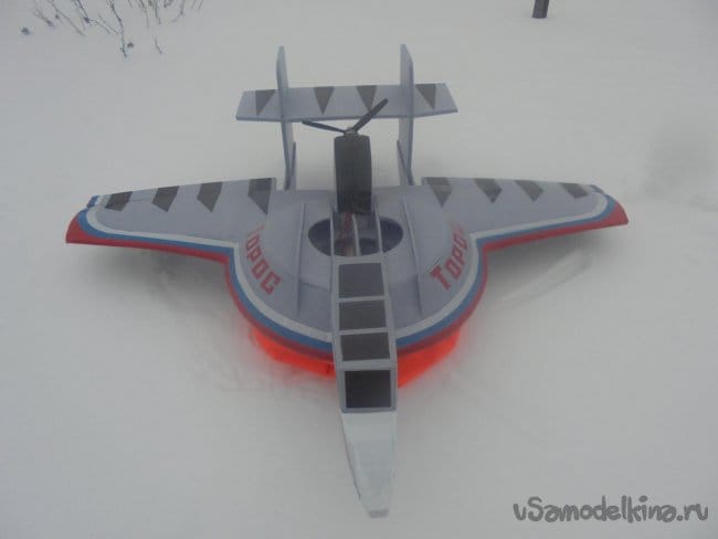 На этой модели вместо импеллера на поддув воздуха в воздушную подушку, решил поставить мотор с винтом.