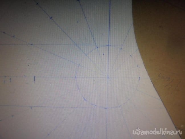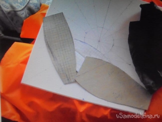 Разделил каждую окружность на 10 частей (сегментов) получил размеры выкройки самой «юбки». Сделал лекало, по нему выкроил из шёлковой ткани лоскуты и сшил «юбочку».