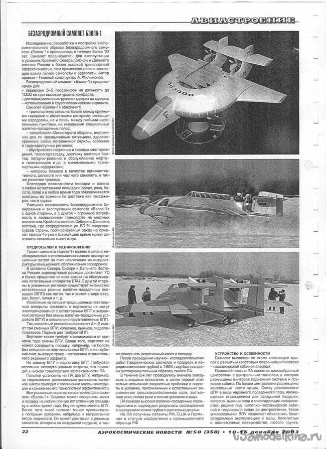 А началось всё с того, что попалась мне вырезка из газеты «Труд» за 14 марта 1996 года, где была опубликована статья о необычном ЛА Алексея Филимонова - БЭЛЛа-1.