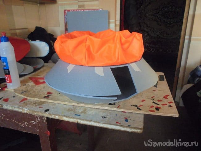 Примерил и приклеил сшитую «юбку» на заготовленный блок воздушной подушки.