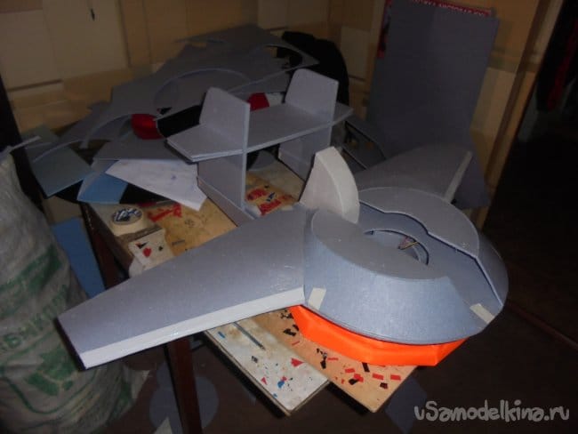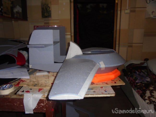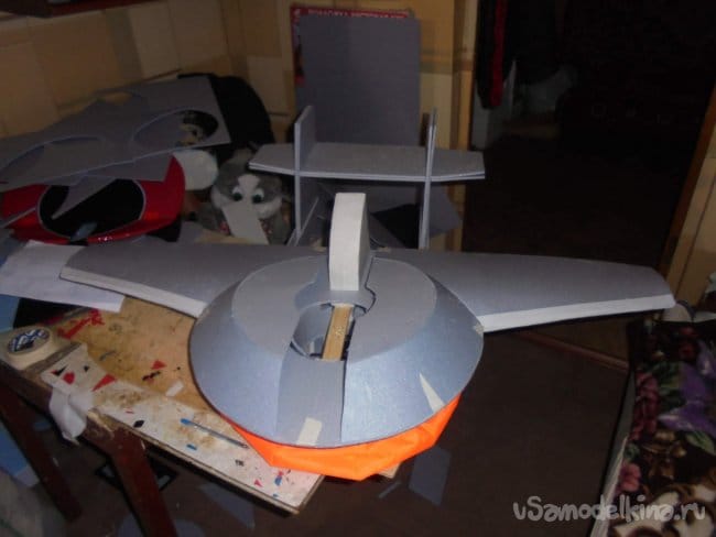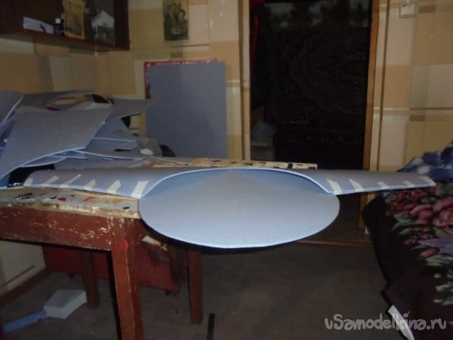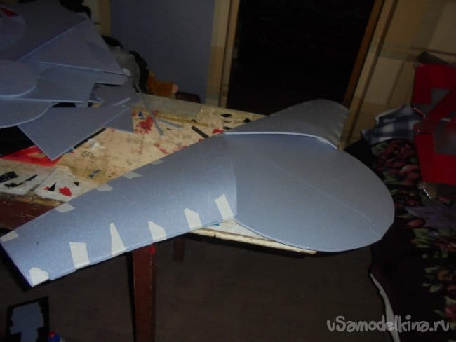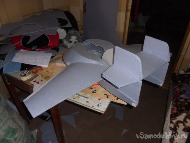 Далее началась работа над созданием фюзеляжа и крыльев. Хочу отметить, что все работы проводятся без чертежей.