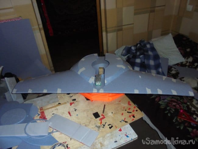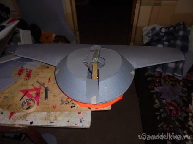 Сверху блока ВП, приклеиваю несущую плоскость, на которой монтируются крылья.