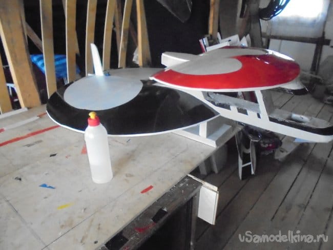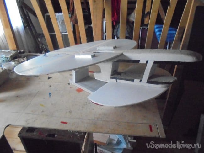 Смонтировал большое крыло на фюзеляж.