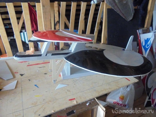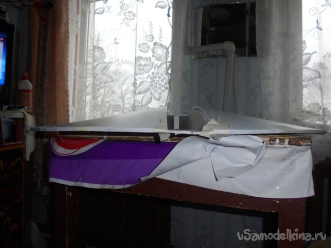 Для проверки лётных качеств и экспериментов , сделал уменьшенную копию моей модели , только с плоскими крыльями.