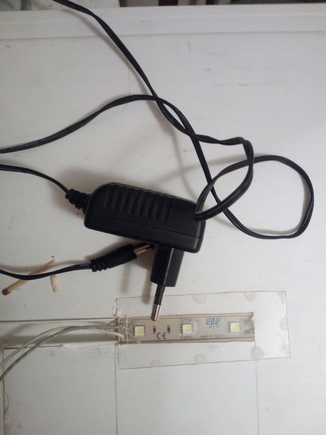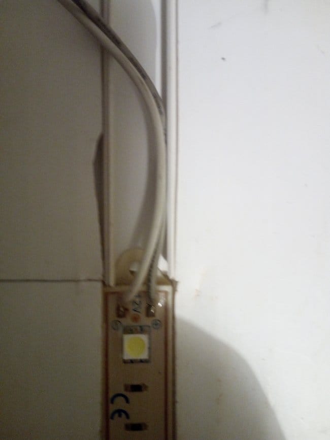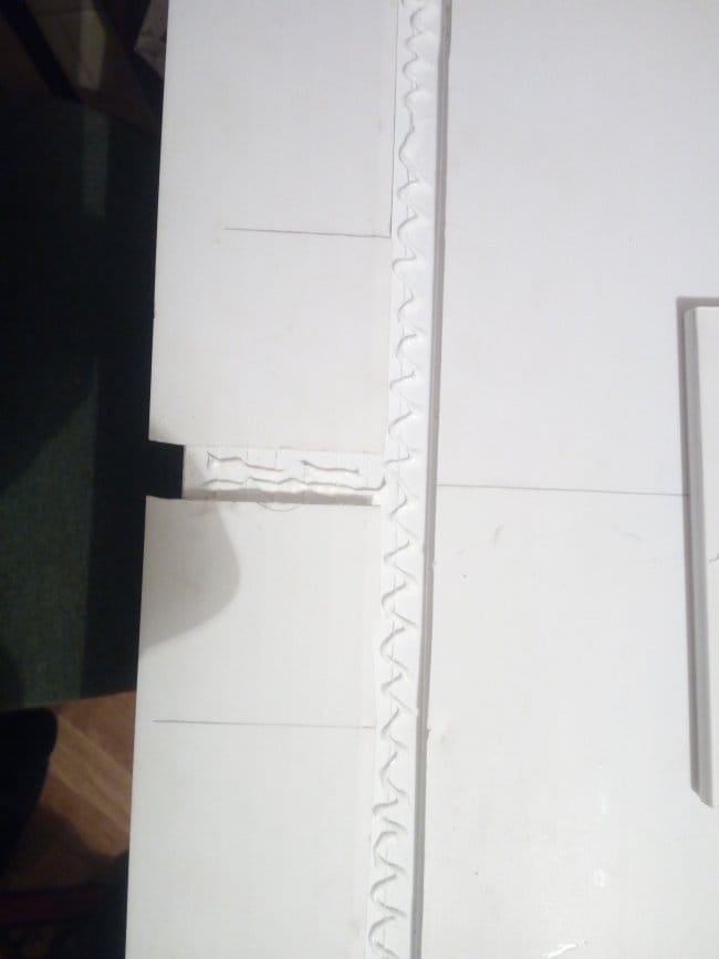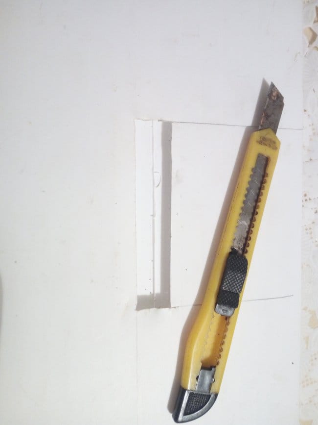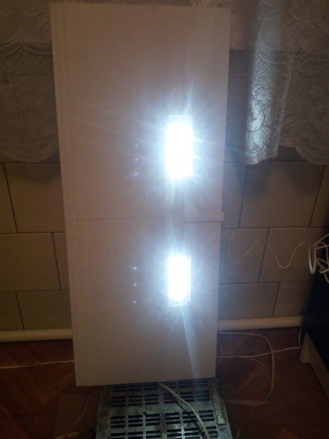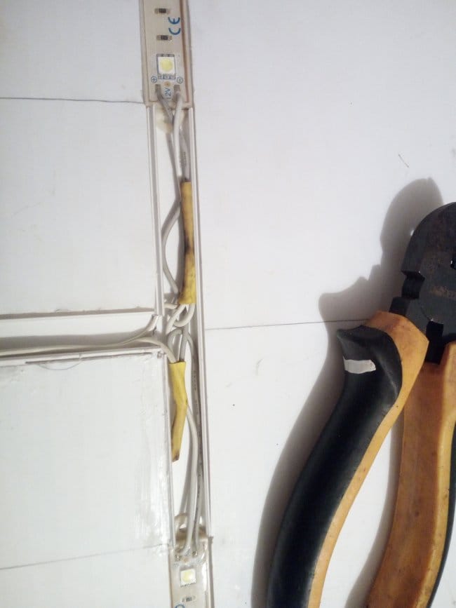 Следующим шагом стала подготовка посадочных мест для ламп. Для этого, с помощью канцелярского ножа, я вырезал в панели углубления. Срезал верхний слой ПВХ, внутреннее боковое ребро жесткости, оставил один слой как место наклейки ламп.