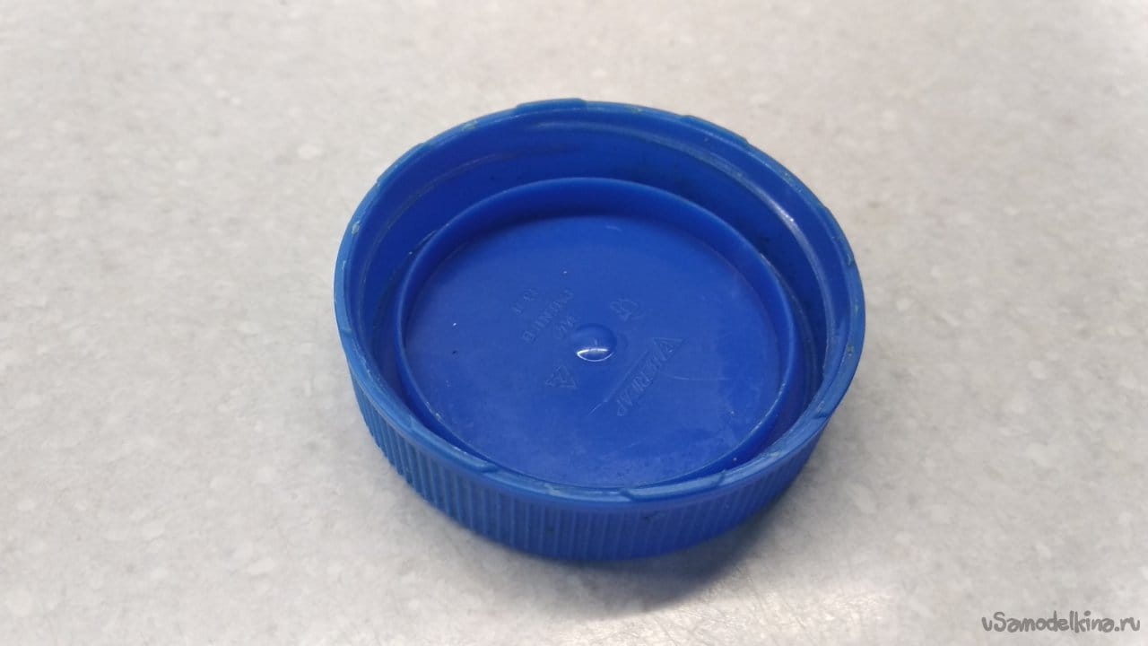 Крышка от ПЭТ бутылки на 5 ÷ 6 литров с широким горлышком (в принципе, подойдёт любая подходящая, но эта крышка удобна для разметки из-за рисок на торце) - 1 шт.
