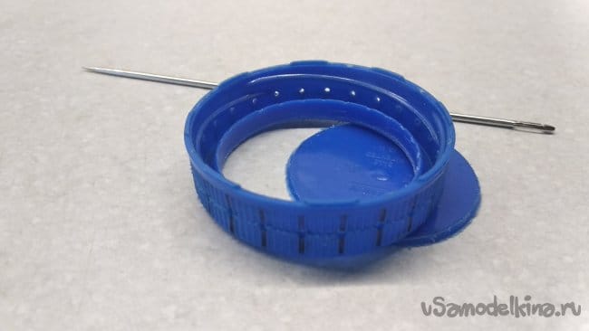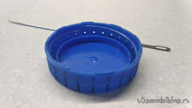 Далее с помощью той же «цыганской» иглы вырезать дно крышки.