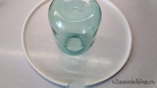 Далее необходимо на трёхлитровой банке подогнуть основу кабель-канала, уже по всей длине.