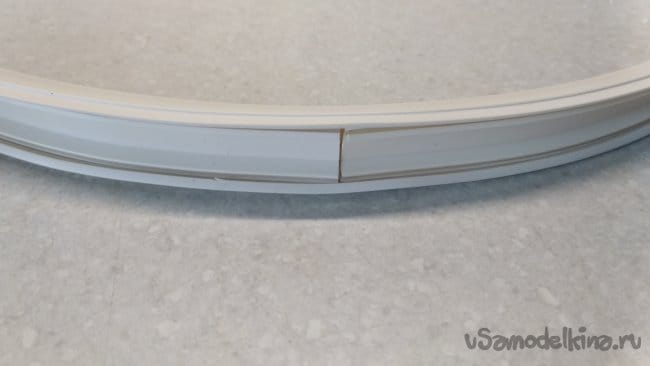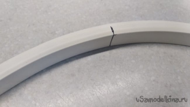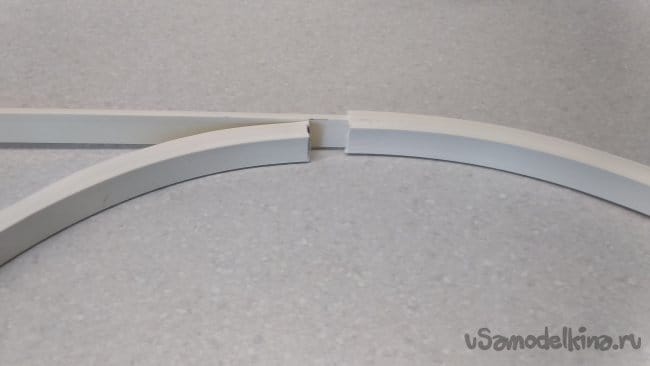 Вложить внутрь подготовленной, свернутой кольцом, основы, уже размеченную крышку кабель-канала (желательно, чтобы разметка не совпадала с заводскими отверстиями для крепления).