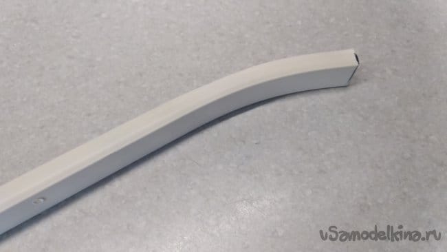 Вначале один край основы кабель-канала подогнуть на трёхлитровой банке и отрезать на изгибе.