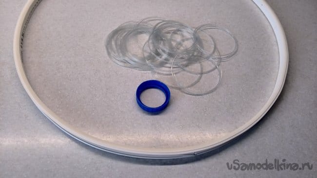 Далее из крышки от ПЭТ бутылки необходимо изготовить внутреннее кольцо.